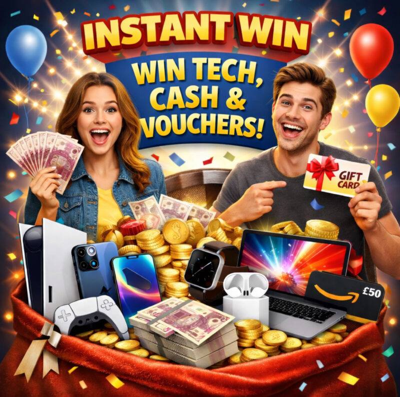 ⚡️NEW! INSTANT WINS⚡️Tech, Cash & Vouchers – PS5s, iPads, TVs etc & a £1250 end prize