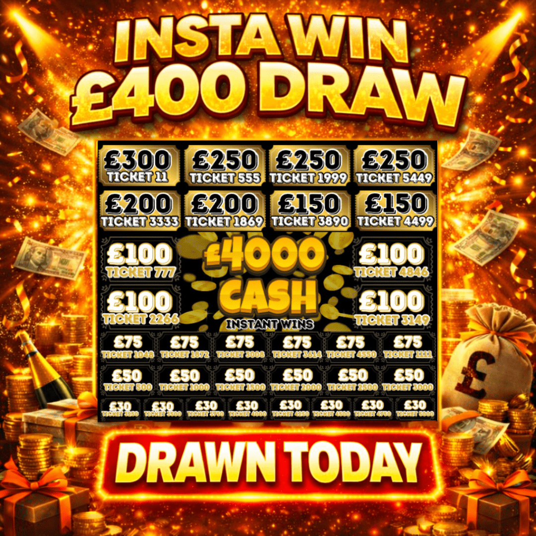 ⚡️£4000 INSTANT WINS⚡️ (over 100 to find) + £400 DRAWN TONIGHT!!!