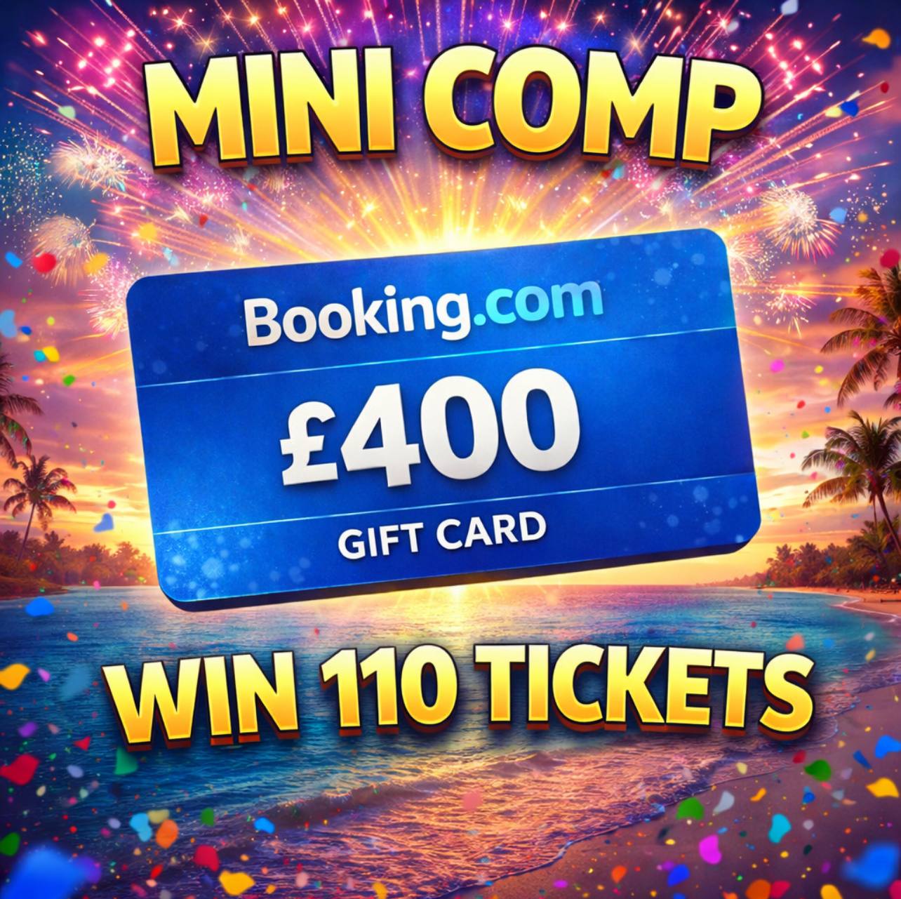 Winner of this mini comp will get 110 tickets into the main £400 booking.com voucher draw